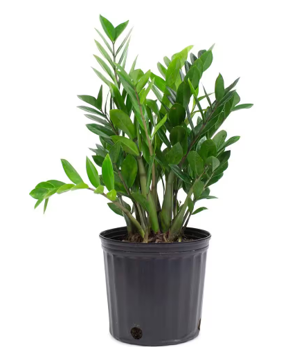 ZZ Plant (Zamioculcas zamiifolia): This popular office plant is incredibly low maintenance, tolerating low light and infrequent watering. Over time, their "branches" (which are really individual compound leaves) may begin to stretch outwards; tucking more soil around them helps keep them supported and upright. ZZ plants need water about every 3-4 weeks.