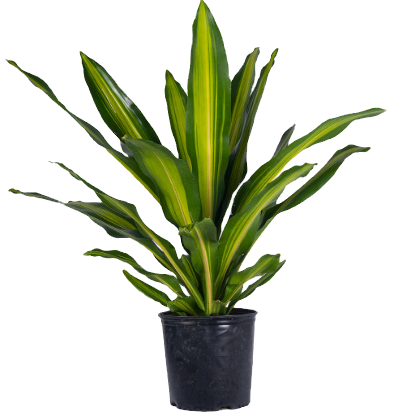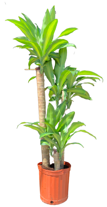 Mass Cane (Dracaena massangeana): These tall, bold plants are often called 'Corn Plants' due to their large floppy green leaves. They require water around every 2-3 weeks.